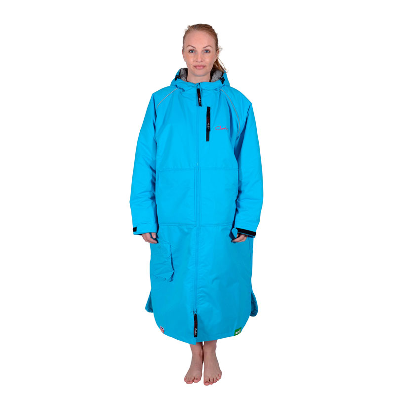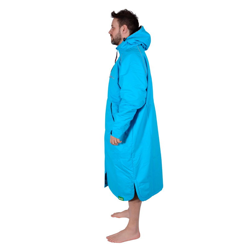 Inside the Changing Robe Waterproof Coat is a various number of zipped pockets, which also includes a mesh goggle pocket. This is a great addition for the swimmers, divers and triathletes and as a result helps prevent the loss of smaller items, by keeping them safe. There are also extra-long zip pulls added which is great for cold fingers on the early morning starts.