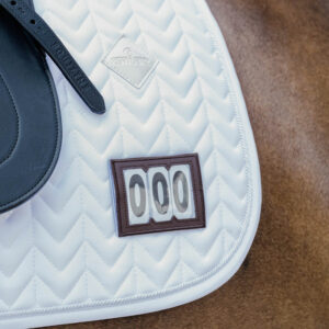The New Dressage Saddle Pad Fishbone Competition, featuring two numbers, is ideal for all your competitive events. It comes with two detachable artificial leather patches, enabling you to display your starting number on either side of the pad.