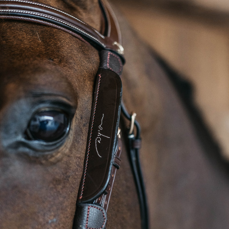 The Dy’on Blinkers with fancy stitching will fit any bridle but of course are best suited to the Dy’on Bridles found here.