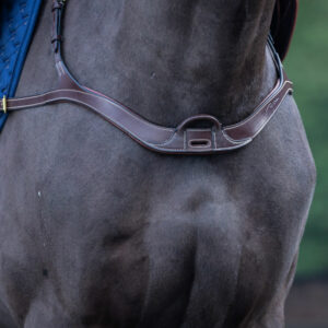 The Dy’on Collection Anatomic Breastplate is a beautiful five point breastplate made from gorgeous Catalan leather. The breastplate is finished with stylish cream stitching and brass fittings to match the Dy’on Collection bridles.