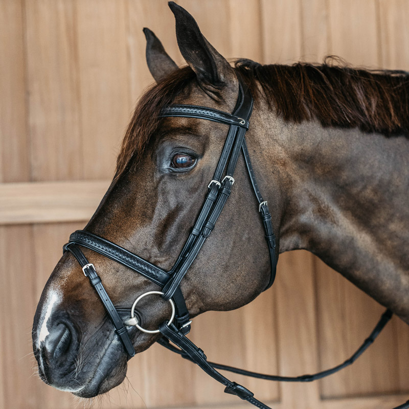 The grade 1 Catalan leather used in all the New English products is bar some of the best leather used in the equestrian world. The bridle can be used for everyday training as well as for shows.