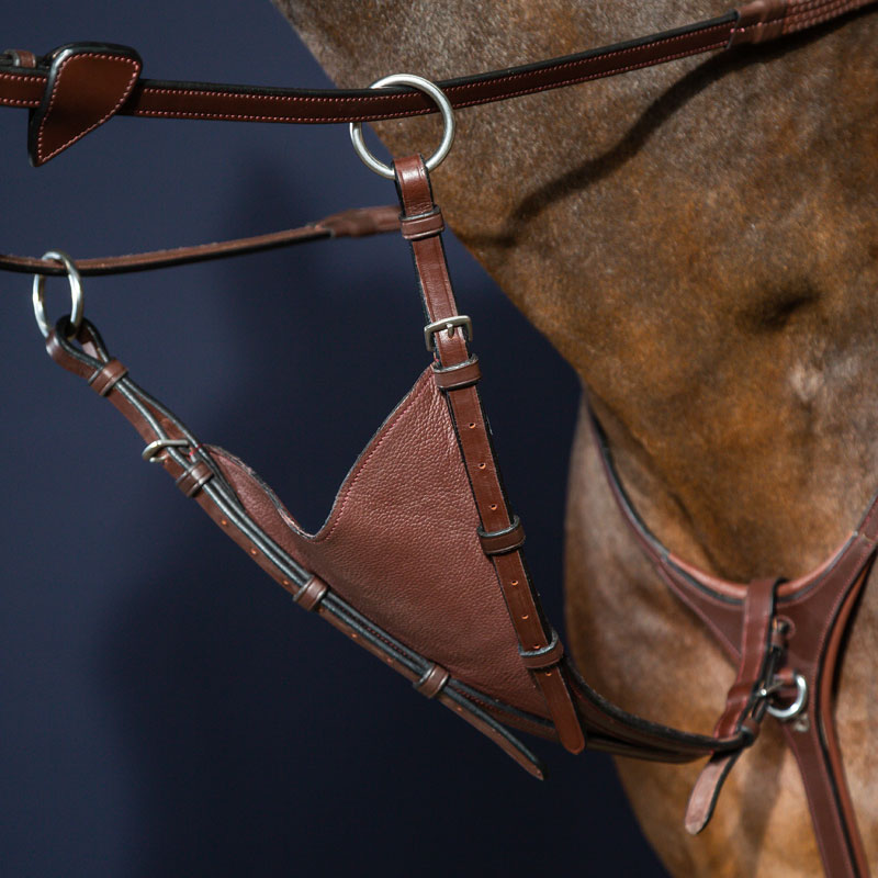 Fully adjustable and crafted from exceptionally soft Dy’on leather, the Dy’on New English Soft Bib Martingale Attachment secures with a stainless steel roller buckle to the Dy’on Yoke or breastplate.