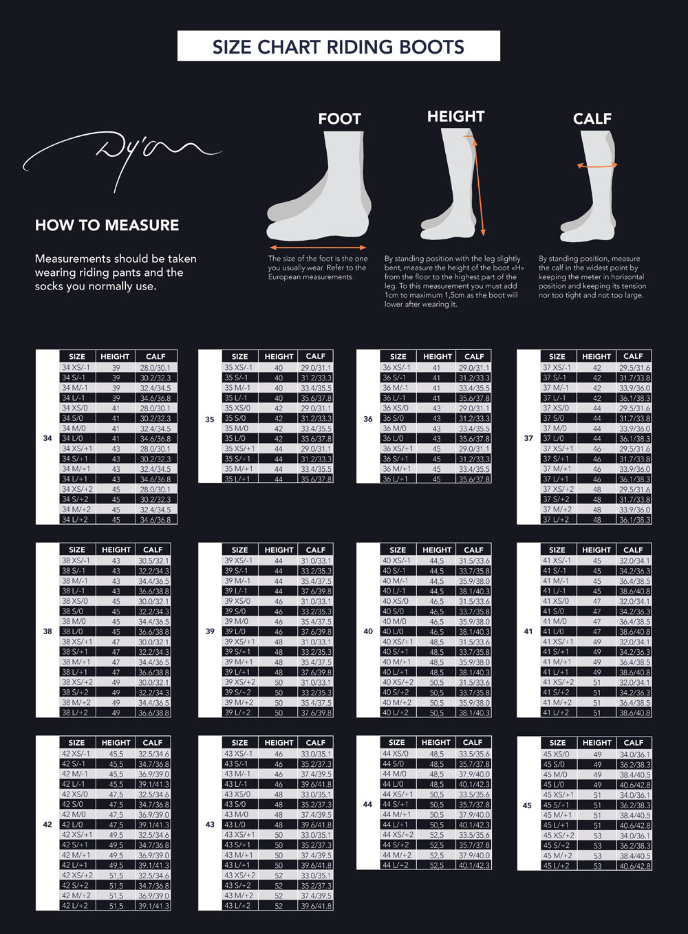 Ideal for British riders competing or training year-round, these equestrian riding boots combine elegance with practical features. Subtle elastic front laces provide enhanced foot flexibility, while the discreet Dy’on silver logo adds a polished, professional finish suitable for the show ring or everyday riding.