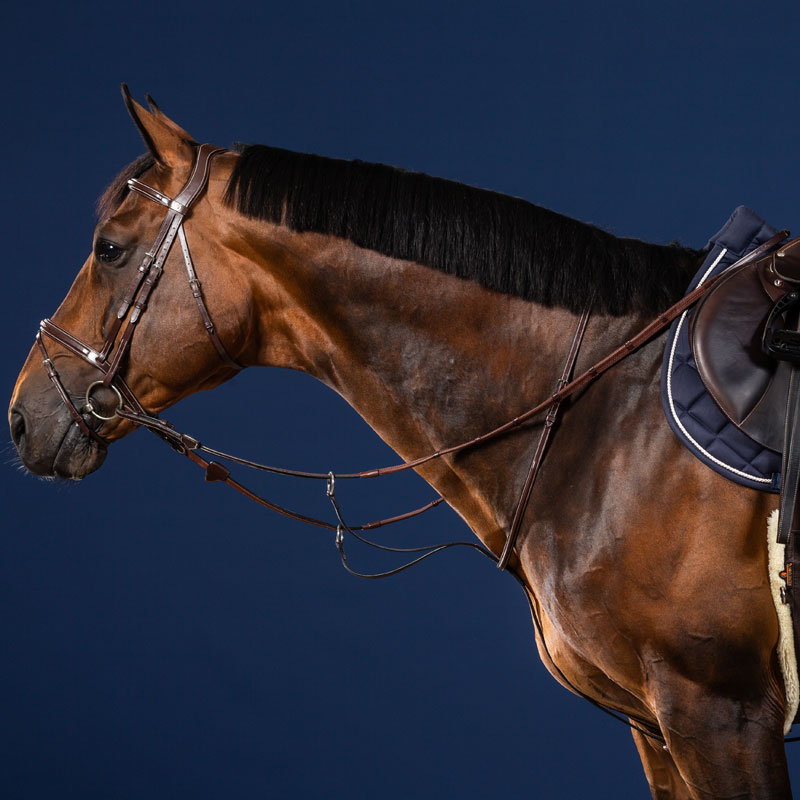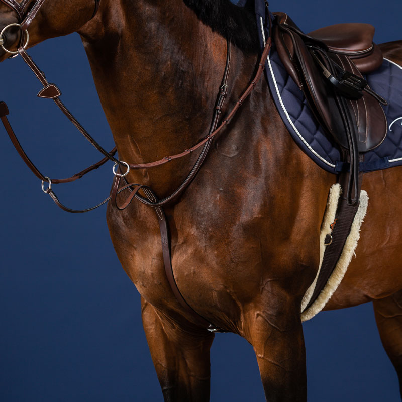 The Dy’on US Collection Running Martingale featuring square raised and decorative top stitching, with girth adjustment facilitated by a closed loop assembly.