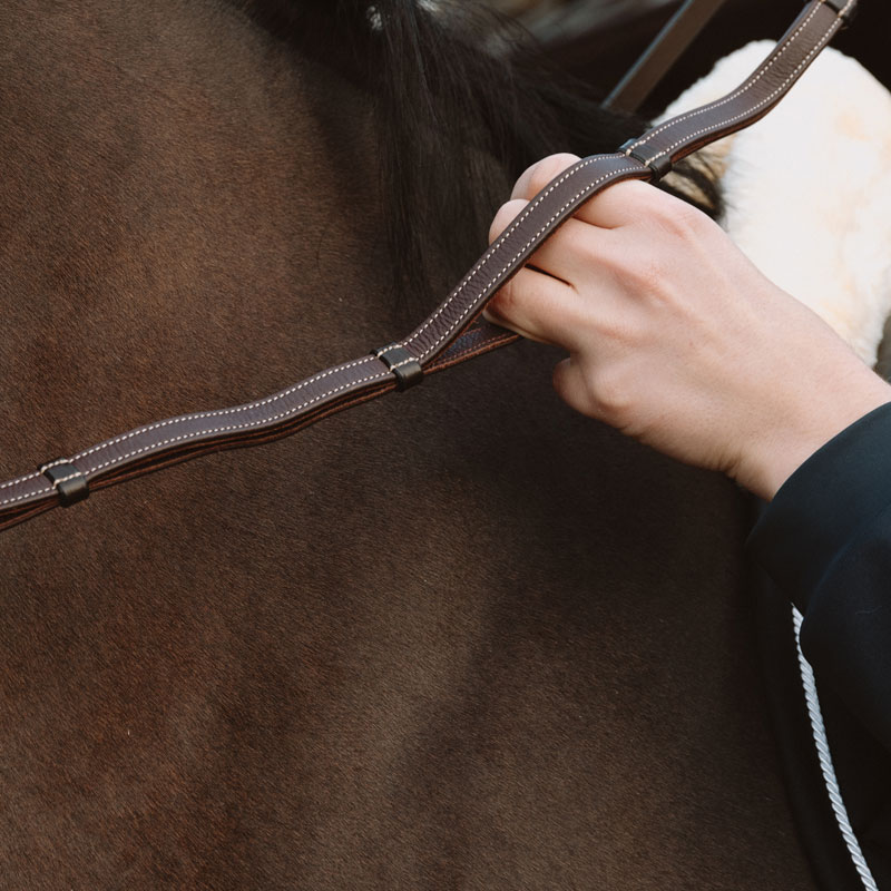 With four handles per side, these reins revolutionize rein management. Whether working on transitions, maintaining even contact, or navigating technical courses the ergonomic design allows you to on riding without worrying about rein adjustments. The leather construction prevents hand fatigue, offering maximum comfort.