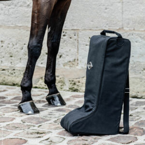 The bag is generously designed in terms of its size and can store boots up to size 51 (EU size). Internally, there is also a divider too so the boots don’t rub or damage each other. To the side of the bag there is also an additional small pocket so you can also store extra items like spurs or other small accessories. The long side pocket can also be used to store a whip. On the top of the bag, the handle and adjustable strap design also ensures the bag can be carried easily.