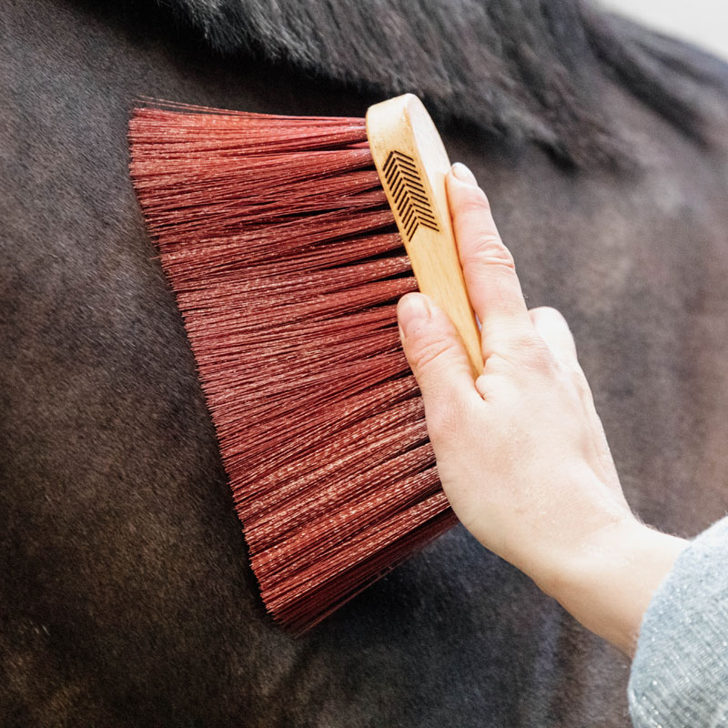The middle Brush Long will be one of the last steps in your cleaning routine. It can be used for a fast overbrushing of your horse before putting on the saddle and entering the ring. The brush can also be used to get rid of dirt and dust on rugs.
