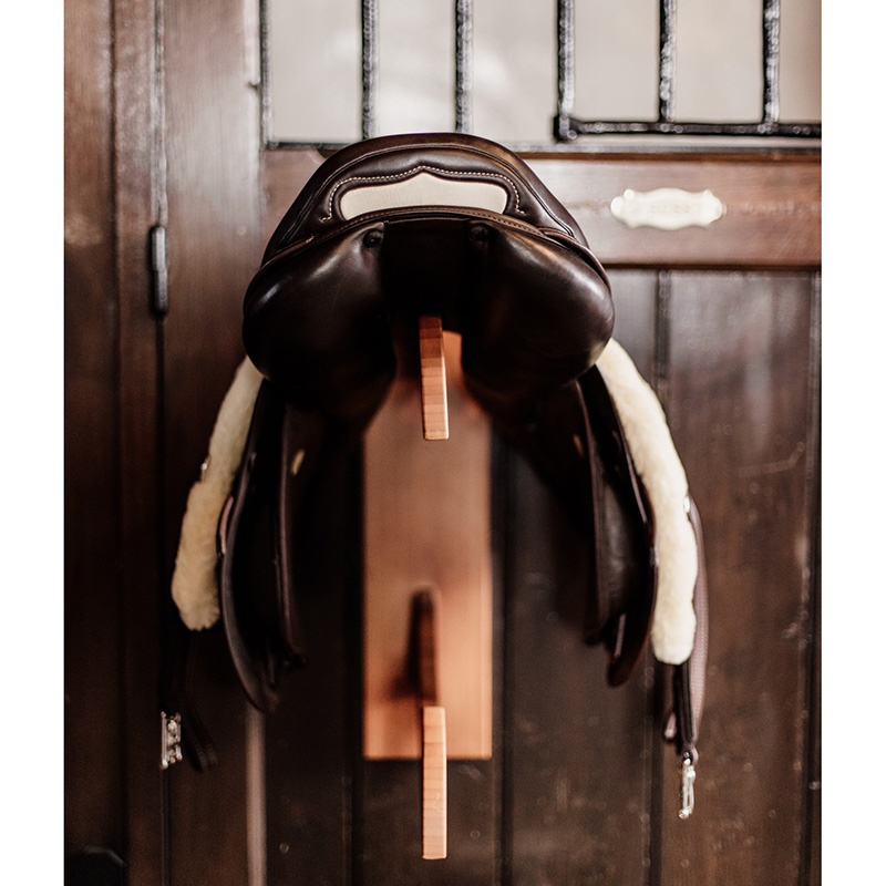 Installation of your new Grooming Deluxe Saddle Rack couldn’t be simpler. The saddle rack comes equipped with a large, sturdy hook at the back, allowing for effortless hanging on stable walls, tack room doors, or any suitable surface. This feature makes the saddle rack not only practical for permanent installations but also ideal for temporary setups at shows or clinics.