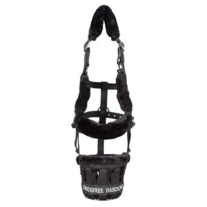 The Handsfree Handling Head Collar and Muzzle is a perfect solution for you horse and pony. The adjustable muzzle is not only great for limiting your horse and ponies grazing on fresh green grass, but it also allows you to place treats at the bottom of the muzzle and as a result, diverting your horse or pony’s attention.