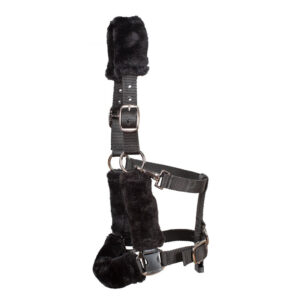 The muzzle clips fit easily and quickly to quick release clips fitted to the head collar. The head collar and grazing muzzle is finished in a soft artificial sheepskin which is easy to wash.