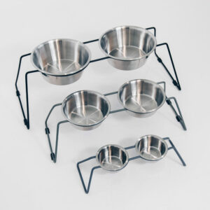 Each Kentucky Dogwear Dog Bowl Comfort Feeder comes with two stainless-steel bowls as depicted in the photograph, ready for use straight out of the box.