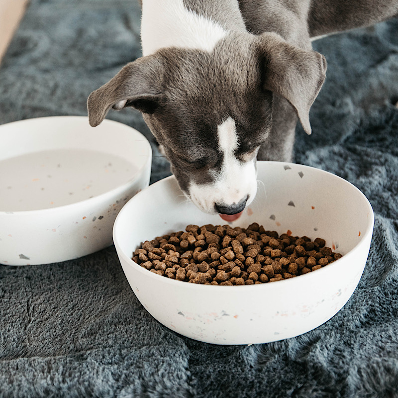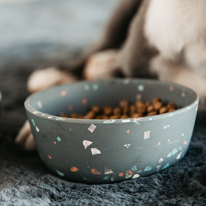The Kentucky Dogwear Bamboo Terrazzo Dog Bowl will bring a colourful but sober touch to your interior. The terrazzo design very subtly evokes natural stone in its small shape of different colours.