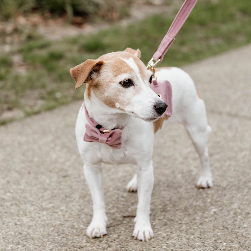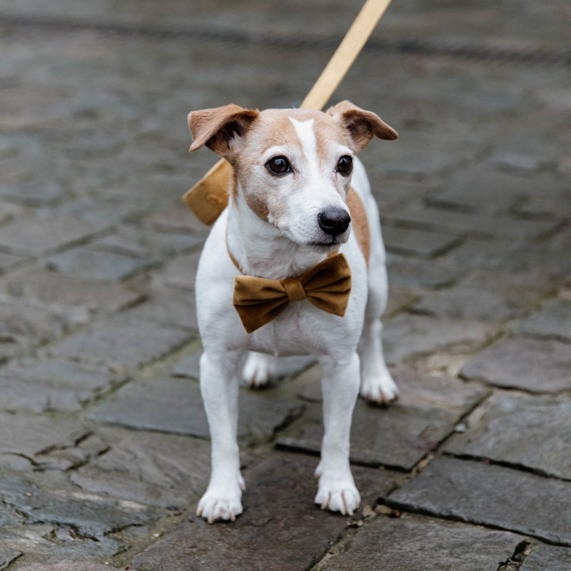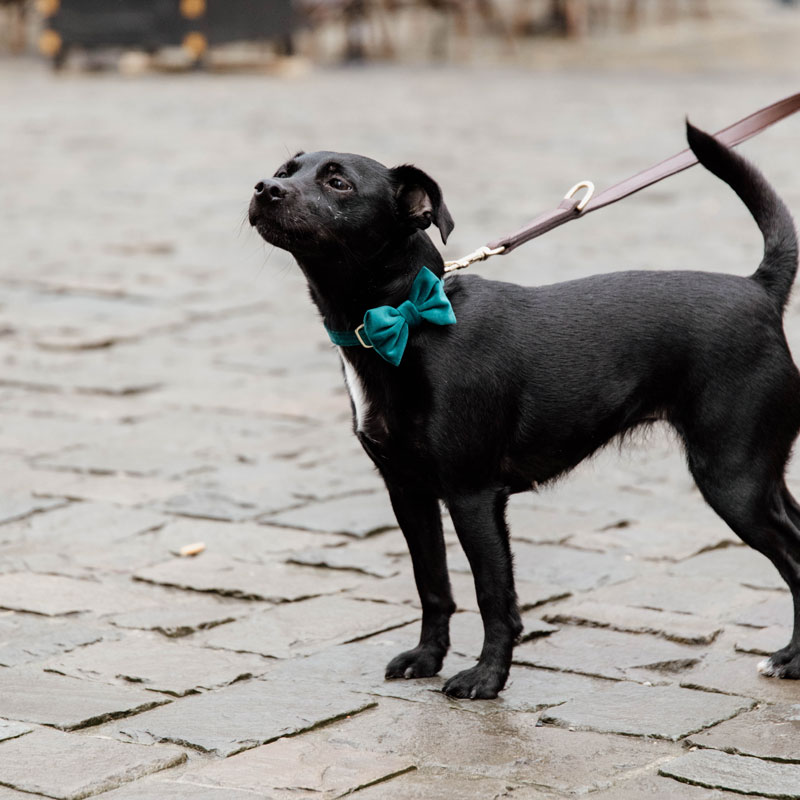 The velvet dog bow tie is made from the same soft velvet fabric that match the velvet dog collars and velvet dog leads in our range. The bow tie can be easily attached to any collar of your choice and of course we would love you to choose a new collar from our range, but it is not necessary. The bow tie will attach to your original collar that you may love. The two elastic straps at the back of the bow will help you find that perfect fit.