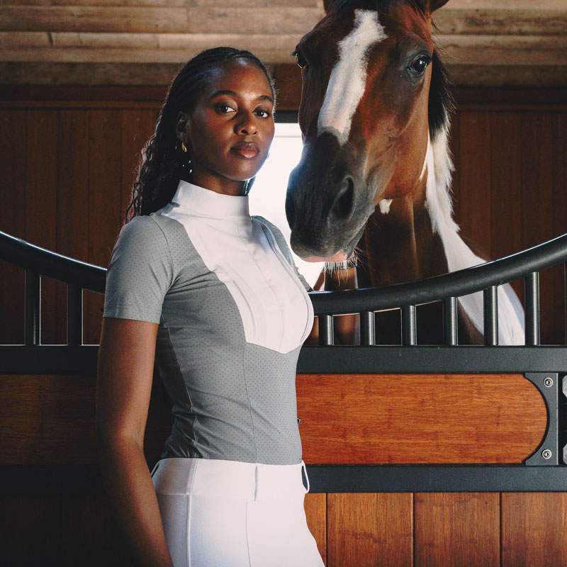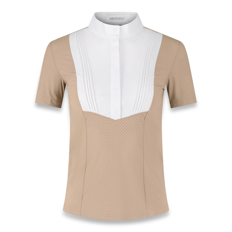 The Kentucky Heritage Air Short Sleeve Show Shirt blends classic style with modern functionality. Perfect for summer shows, it’s crafted with lightweight, breathable materials to keep you cool and focused. The traditional poplin bib provides an elegant contrast to the technical, perforated fabric, while subtle branding maintains a clean, professional appearance. It’s the ideal mix of style, comfort, and performance for competition days.