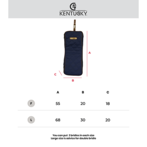 The Kentucky Horsewear Bridle Bag offers absolute protection to your bridles. Use when storing your bridles in the lorry and also travelling from the stables and to the horse shows. Lined with Kentucky’s famous faux fur. The bridle bag is also 100% animal friendly and as a result preferred by many Vegan enthusiasts.