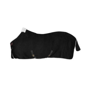 The Kentucky Horsewear Cooler Rug PROtherm is indispensable for a horse’s recovery and comfort. It utilizes a fabric blend that reflects the horse’s body heat while allowing moisture to escape, thus preventing overheating and accelerating drying time.