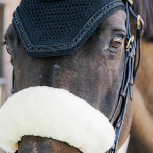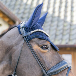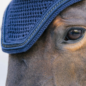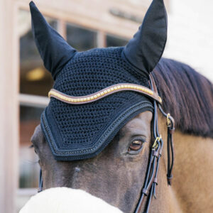 The new Fly Veil Wellington Metal Chain boasts a distinctive style with its chain link finish neatly set between the rolled piping, giving it a unique appearance. This Fly Veil Wellington Metal Chain offers protection for the horse’s ears from flies during rides. The material is stretchy and slim fit around the ears, and the neck part is extended to prevent the fly veil from slipping or moving while riding.