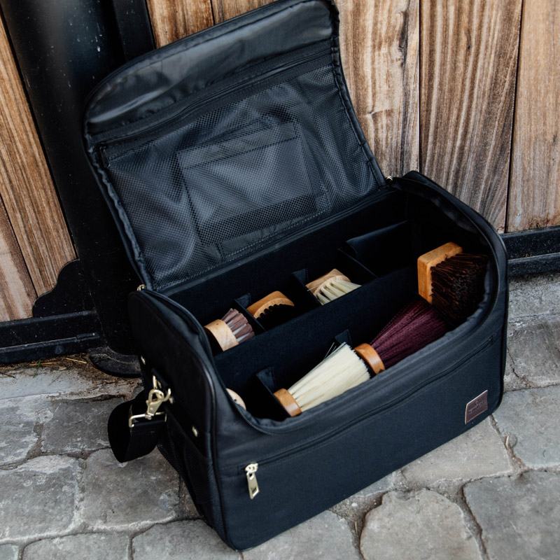 The Kentucky Horsewear Grooming Bag is the perfect solution to keep your equestrian grooming brushes all neat and tidy in one place. A strong and spacious bag that has adjustable Velcro inserts for better brush management.