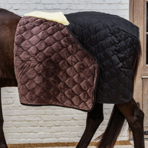 The rug’s outer layer is crafted from robust 600D fabric, while the inside features breathable vegan rabbit fur, perfect for horses with sensitive skin. It also comes with a detachable elastic cord covered in plastic.