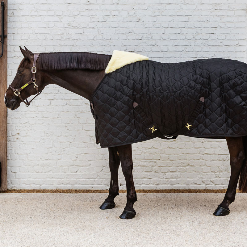 The rug’s classic elegance is complemented by its anatomical design and comfort buckle, providing stability and comfort without exerting pressure on the chest. Vegan sheepskin at the wither enhances protection and allows for shoulder movement.