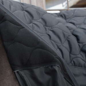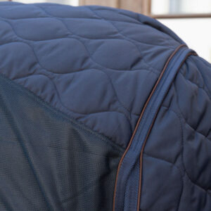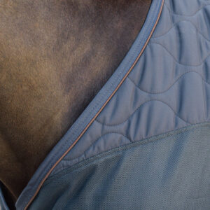 The rug’s back is crafted from durable, tear-resistant fabric composed of 100% PU-coated polyester. With its 150g padding and moisture-wicking fleece lining, your horse will remain dry and warm. The mesh sections along the sides ensure the rug is highly breathable. For added comfort, vegan sheepskin is incorporated at the withers.