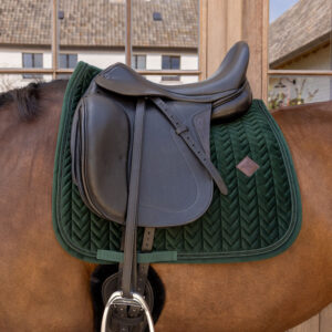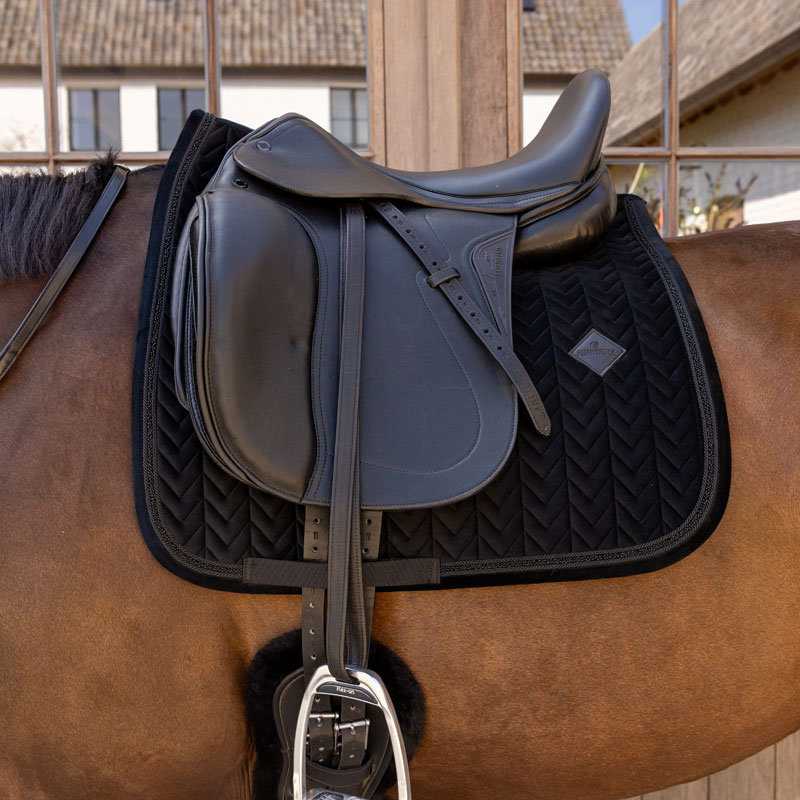 What truly distinguishes the Velvet Mini Pearls Saddle Pad Dressage is the meticulously placed mini pearl embellishments that catch light beautifully, adding a touch of understated glamour to your riding ensemble. These carefully selected pearls provide just the right amount of sparkle without overwhelming the classic design.