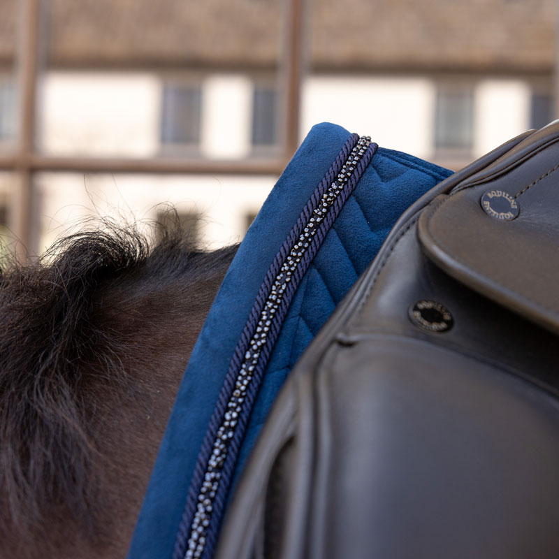 The Velvet Mini Pearls Saddle Pad represents the pinnacle of equestrian craftsmanship, designed for discerning riders who demand both performance and elegance. This exceptional saddle pad is built on our celebrated velvet collection foundation, showcasing the distinctive fishbone quilting pattern that has become our signature.