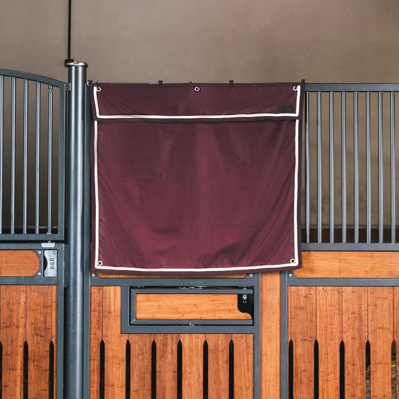 The dual ropes lend a classic touch of elegance for a distinguished look. Its compact size means it offers the advantages of a longer curtain without requiring extra storage space. Trunks can be placed easily underneath. Personalize it by adding your own logo embroidery. For a complete look, pair it with our matching stable guard Classic and Stanley box cover Classic.