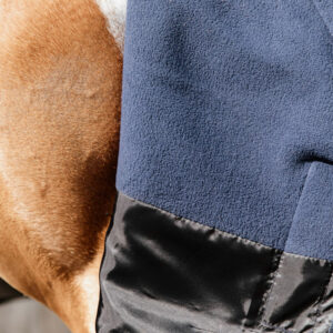 The Turnout Rug All Weather Quick Dry Fleece is made from a 600D ripstop polyester outside with a breathable waterproof coating. This structure makes the rug very tear resistant. The lining of the rug is a smooth anti-bacterial 210T polyester. The fleece fabric is easy to maintain as it does not smell, and hairs don’t stick to it. The fleece will keep your horse warm after training. The combination of these materials keeps your horse dry in any type of weather.