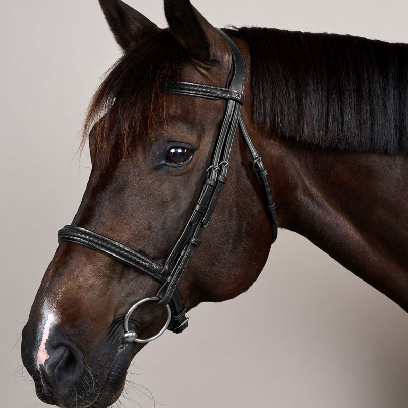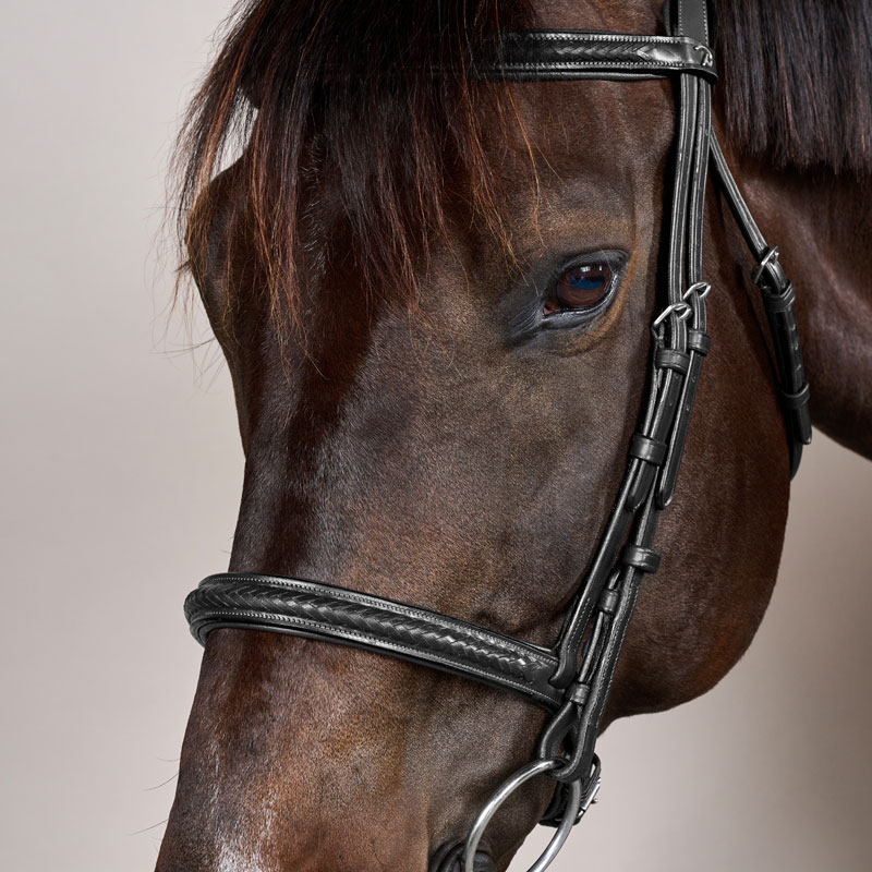 The straight browband is beautifully finished with stylish plaited leather details, adding a refined touch without overwhelming the bridle’s clean, minimalistic look. The distinctive S-shaped headpiece is carefully designed to provide ultimate comfort by relieving pressure behind the ears. This thoughtful ergonomic shape allows the ears to move freely, supporting your horse’s natural motion and relaxation.