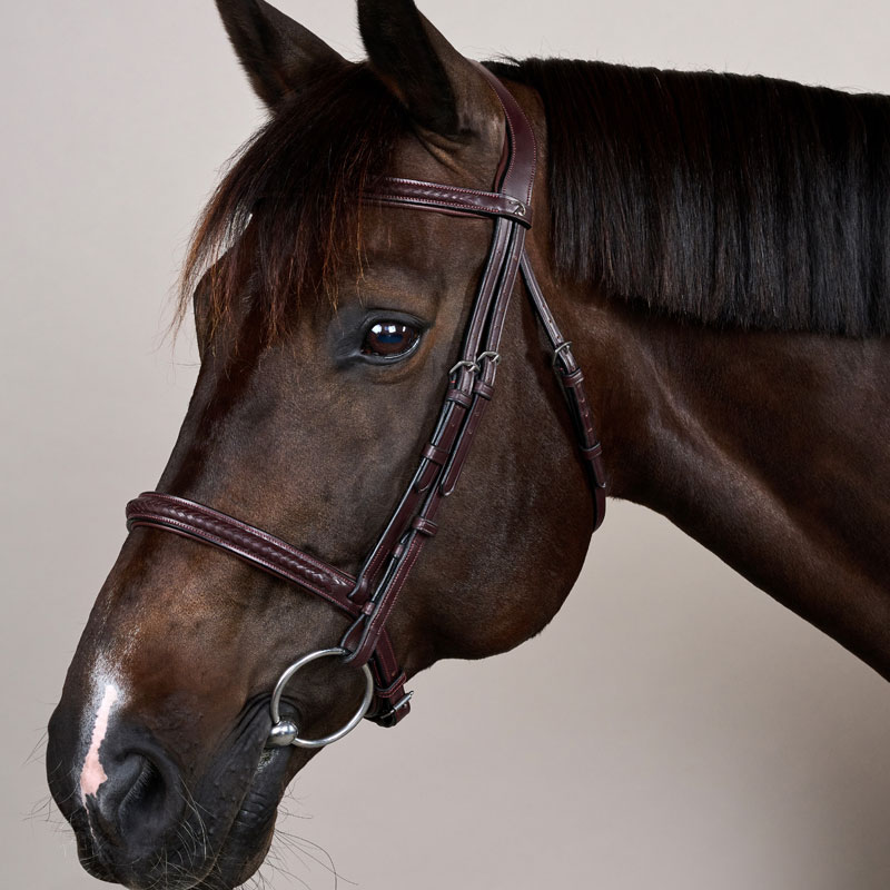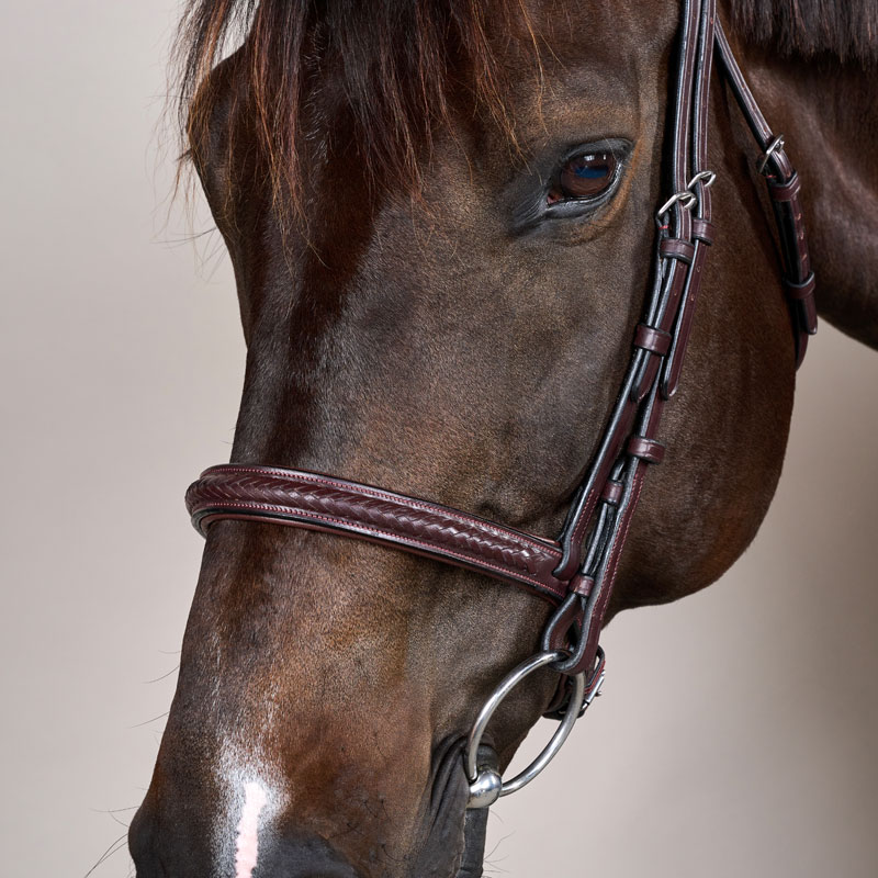 The Plaited Noseband Bridle is the perfect blend of refined craftsmanship, sophisticated style, and exceptional comfort for your horse. Designed with meticulous attention to detail, this bridle stands out thanks to its elegant plaited leather accents and thoughtfully engineered ergonomic features. Whether you are training at home or preparing for competition, the Plaited Noseband Bridle delivers both performance and timeless appeal.