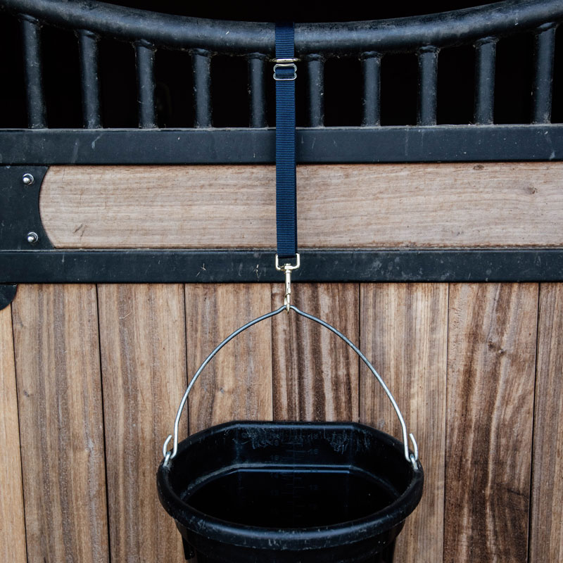 The Nylon Hook And Ring Long Bucket Holder is a strong nylon, adjustable strap attached to a snap hook and ring. Tough and durable these are longer than the original Hook & Rings with an adjustment from 45cm to 75cm. This adjustment is great in allowing you to find the best length for its use. They can be used for all sort of jobs in and around the stables, on the yard, really anywhere.