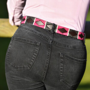Pampa Leather Polo Belts – Black/Berry White Stripe