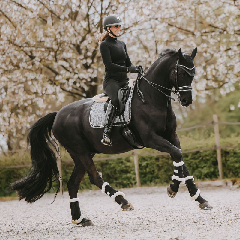 The Pied-de-Poule Saddle Pad features a graphic and chic design. Adorned with the timeless Pied-de-Poule pattern, this classic yet fashionable design adds rhythm and elegance to your horse’s attire.