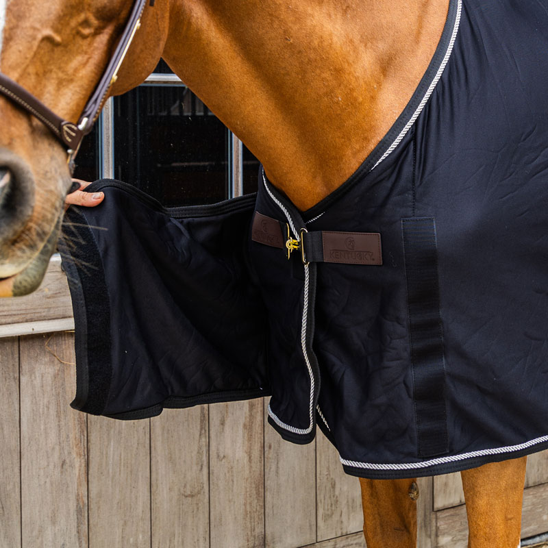 For added practicality, a secure tail strap keeps the rug neatly in place, even during celebratory victory laps or movement around the showgrounds. This ensures the rug maintains its elegant drape without shifting.