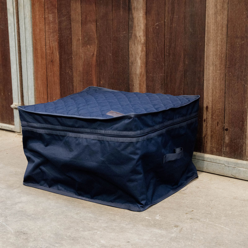 The rug and saddle pad bag pro is the perfect bag for competitions and to also store rugs and saddle pads safely at home. Store your saddle pads and rugs easily in the spacious bag and take them everywhere. The bag keeps your Kentucky products clean and avoids getting moldy. The quilted cube style perfectly matches our other travel essentials.