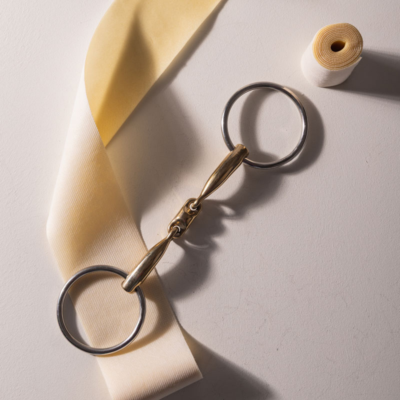 The material resists oxidation, keeping its smooth surface and stable flavour over time, while promoting a calm, confident way of going. The double-jointed design spreads pressure evenly across the tongue and bars, avoiding the nutcracker effect and providing extra comfort—ideal for horses with a lower palate. Loose rings give the mouthpiece freedom to move, encouraging light chewing, flexibility, and attentiveness, while allowing for precise rein aids and a soft, responsive connection.