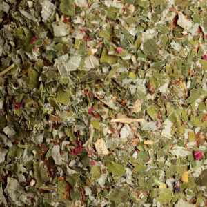 INGREDIENTS: birch sticks, pine sticks, cornflower, wild rose petals, raspberry leaves, essential oils (rosemary, elemi, basil, peppermint, ginger), honey, water, cotton rope