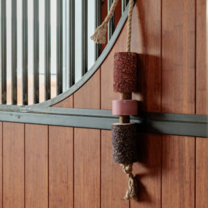 Bring the forest into your stable with our 100% organic wooden horse toy, crafted from pine and birch. Designed to keep your horse engaged and entertained, this natural boredom breaker offers sensory stimulation through scent and texture—The Sammy version combines the gentle beauty of wild rose petals, the soothing benefits of malva, and a lavender-infused salt lick—offering a calming, sensory-rich experience your horse will love.